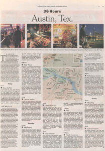 The city’s unofficial motto, “Keep Austin Weird,” blares from bumper stickers on BMWs and jalopies alike, on T-shirts worn by joggers along Lady Bird Lake and in the windows of independently owned shops and restaurants. It’s an exhortation for a city that clings to eccentricity, even in the face of rapid development— downtown Austin, for one, is being transformed with a fleet of high-rise condos and a W Hotel, scheduled to open late next year. But this funky college town, known for its liberal leanings and rich music scene, has little to worry about — at least as long as its openhearted citizens, with their colorful bungalows and tattoos, do their part to keep the city endearingly odd. As one local put it: “As long as Austinites keep decorating their bodies and cars, we’re going to be fine.”