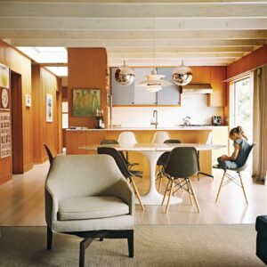The Manhattan-based Canadian couple had bought the house three years earlier, drawn to its space-efficient, family-friendly layout (four bedrooms and two bathrooms in 1,200 square feet) and its location 60 steps from one of the loveliest beaches in the Hamptons. Over the years, they’d rented various share houses in the Dunes, as the neighborhood is called, and they remember admiring this one on their evening walks. “There was a big juniper pine and maple out front,” says Rebecca. “It looked like a really happy place.” One spring, the home became available to rent, and they booked it. A month into their stay, a real estate agent called: The owner wanted to sell the house. Were they interested?