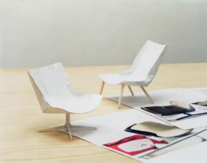 Förster named this chair the Antelope because “it looks almost like it’s going to jump or run.” Designed for Swedese in 2010, it’s made of ash wood with a fabric or leather seat. While working on the model, she once changed the angle of the back simply by taping it down.